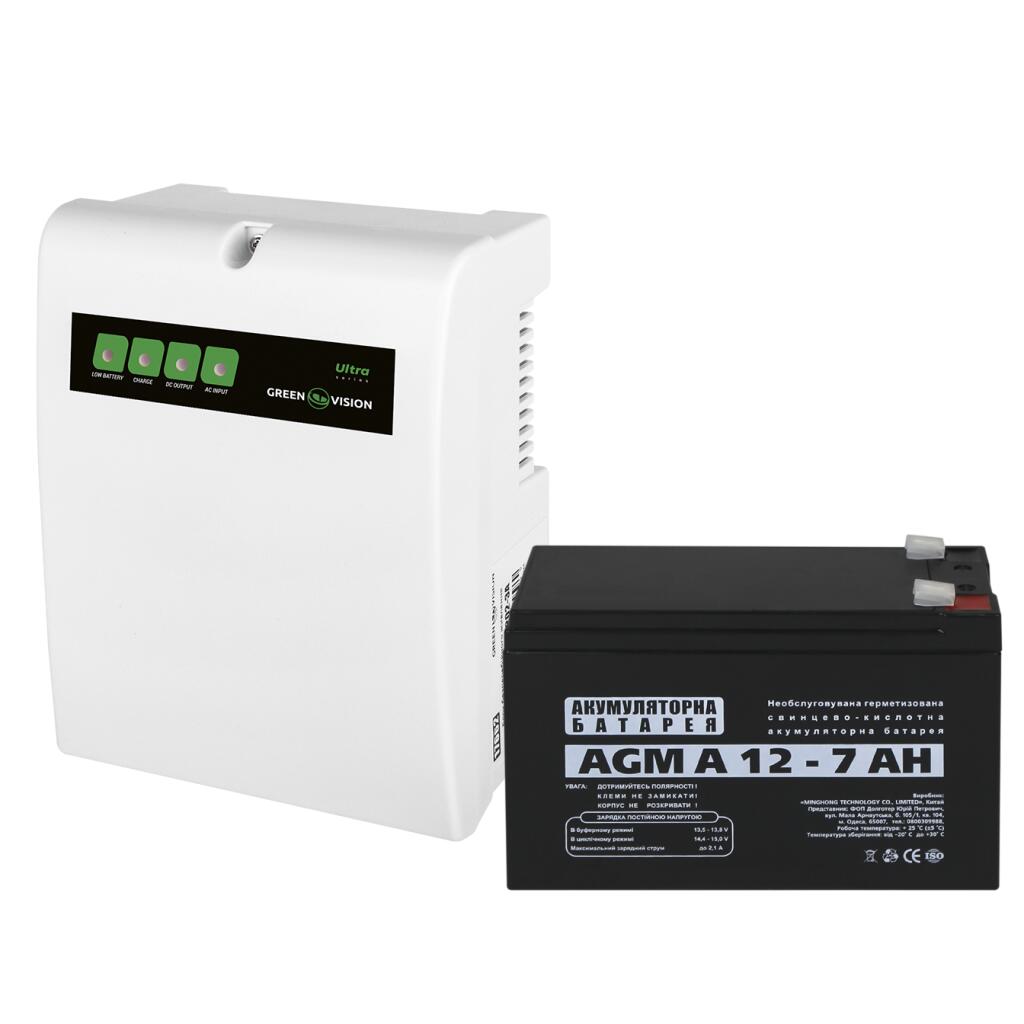 Источник бесперебойного питания (ИБП) GV-004-UPS-A-1202-3A-7Ah состоит из импульсного блока питания, который преобразовывает входное напряжение 190-265 V (частота сети – 50/60 Гц) до параметра DC 12 V ±5% и аккумуляторной батареи внешнего типа 12 V.