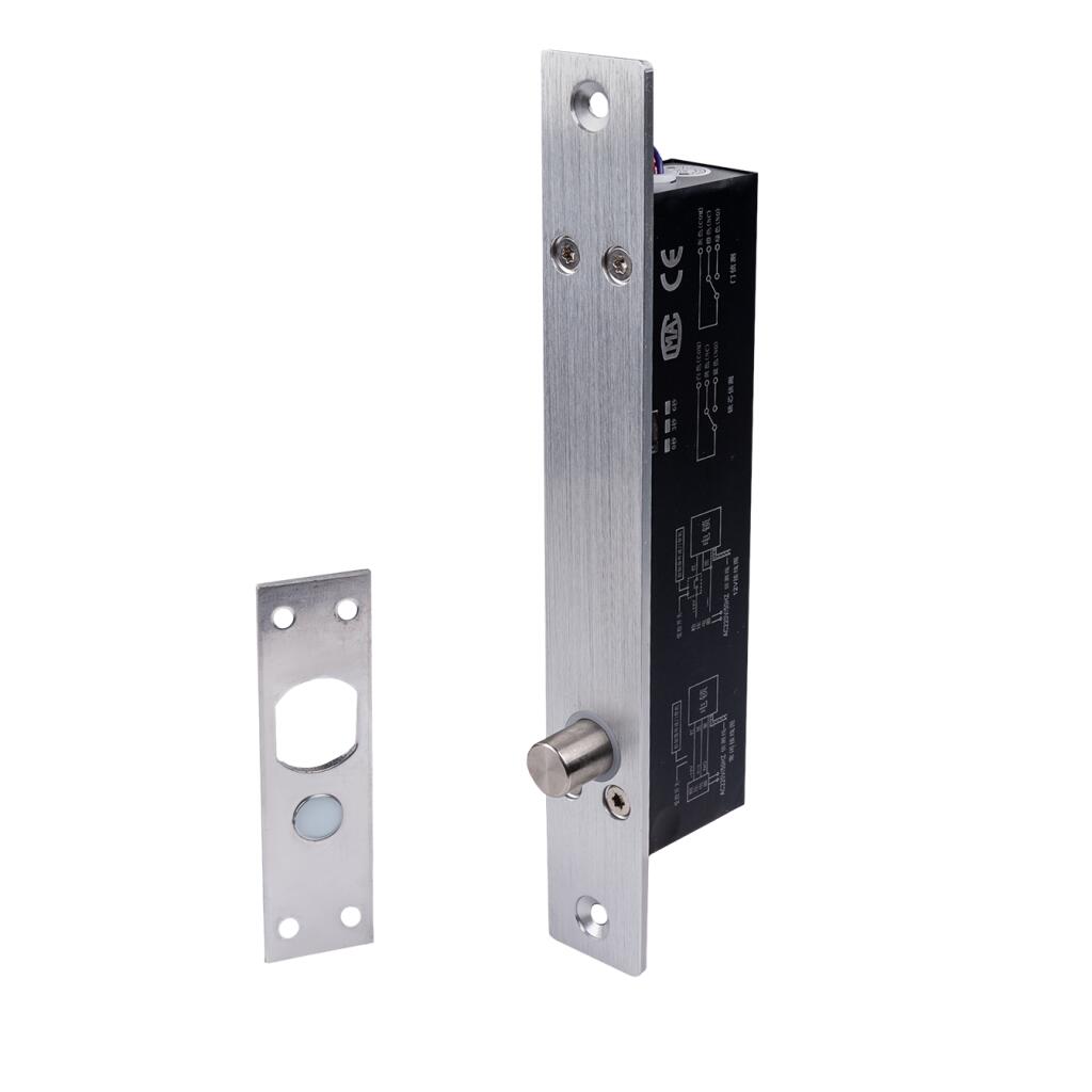 Тип роботи замку – нормально-закритий(NC), коли ригель висувається за відсутності електричної напруги. Довжина ригеля – 15,5 мм. Матеріал виготовлення – сталь.